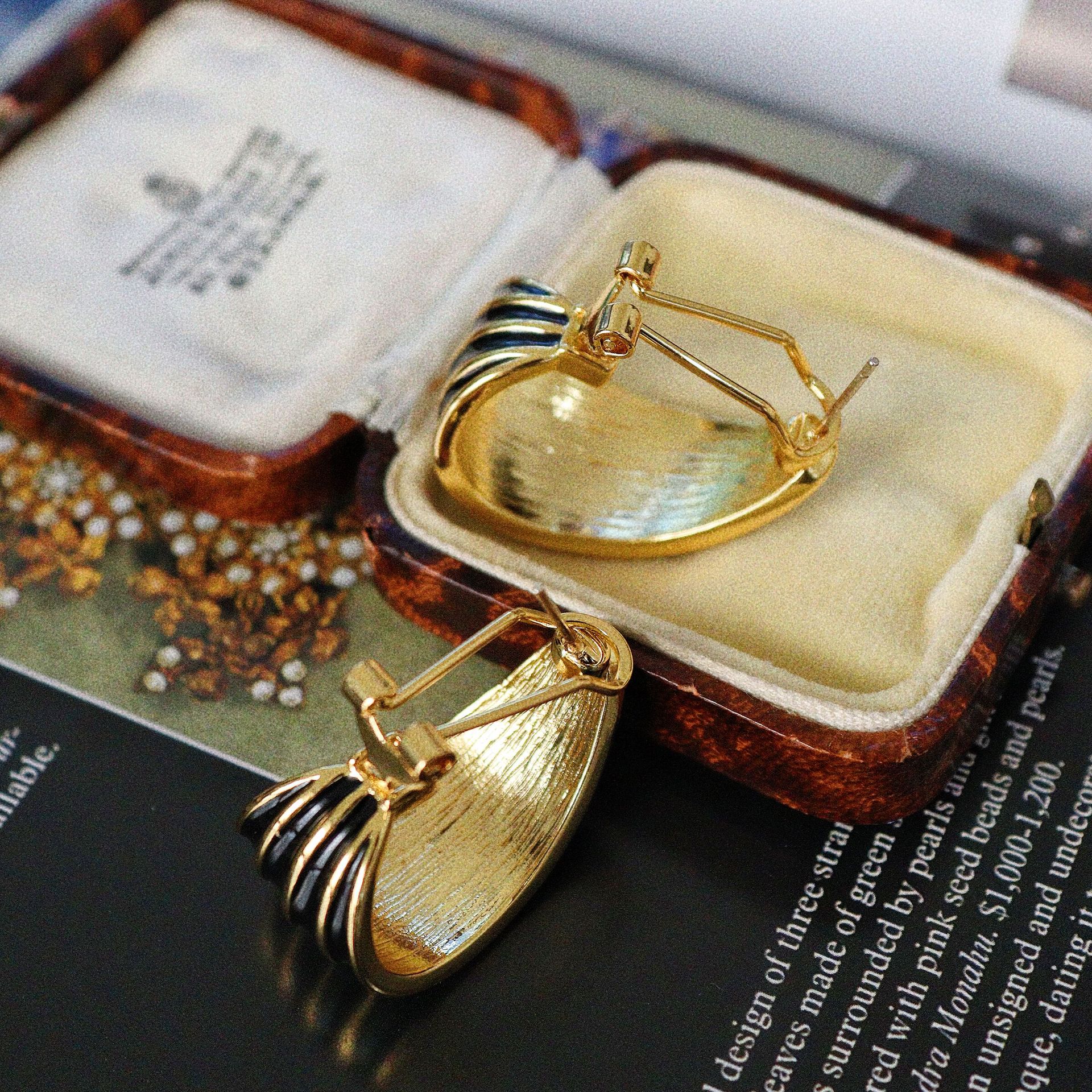 Chic Retrovibe Black Enamel Pattern Earrings